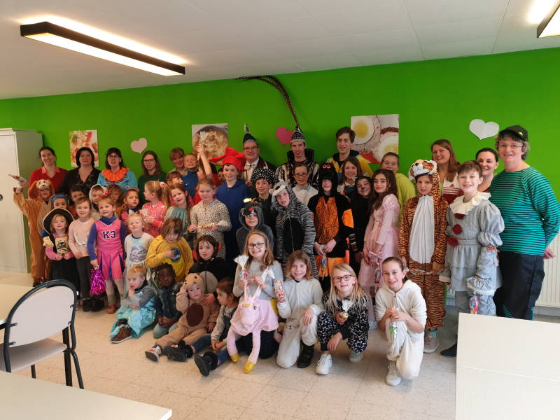 Om 8.45h werd de school van Staden Okidoki bezocht die hun carnavalsweek eindigde met een heus Carnavalontbijt, Prins van Staden 2020 Jenske 1 was aanwezig met zijn stadwacht.